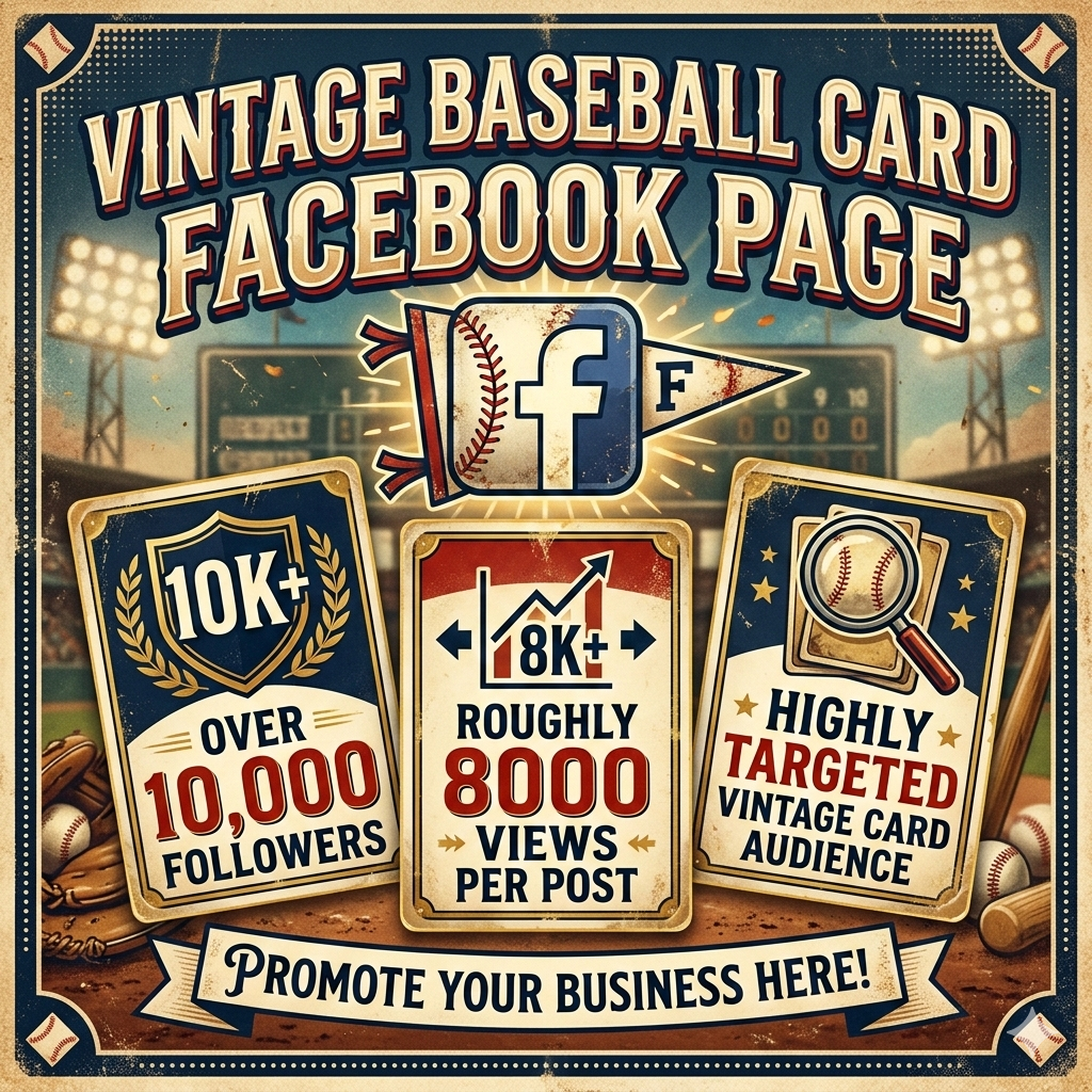 Unlike general sports pages, our audience is focused specifically on vintage baseball cards. This makes sponsored posts highly targeted and relevant for businesses selling vintage cards, auctions, grading services, and hobby products. ✔ Targeted vintage card audience ✔ Daily engagement from collectors ✔ Authentic hobby content (not spam ads) ✔ Direct link placement to your listing or website