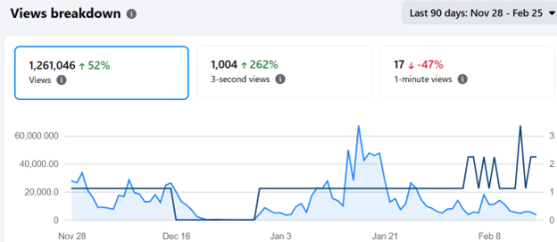 Each post gets about 14,000 views on average. The median views is 8,000 and 75% of posts get at least 4000 view.